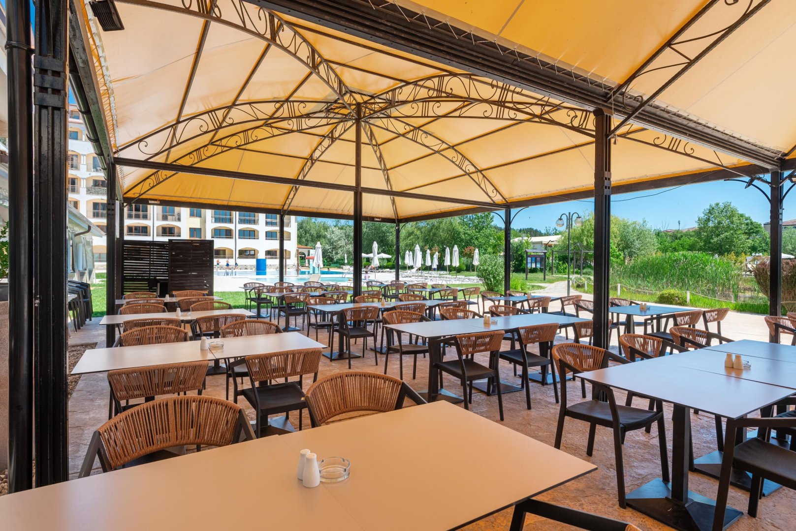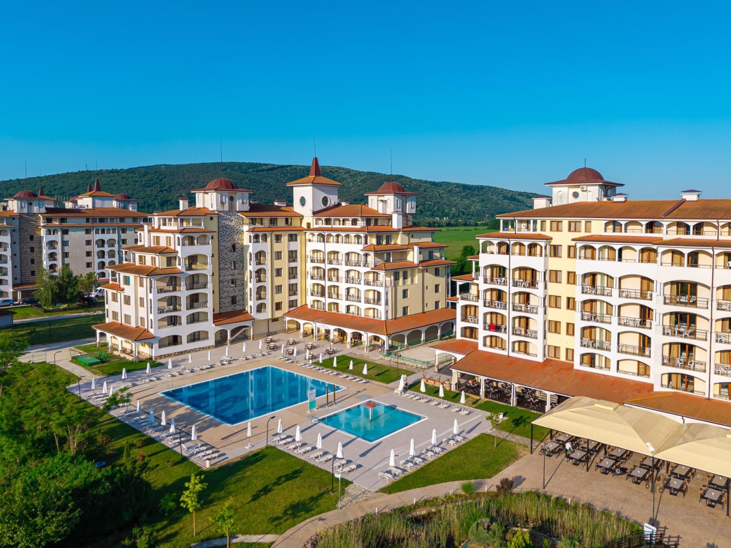 На разположение на гостите са: 3 басейна за възрастни, Био езеро, фитнес, дартс, водна топка, зумба, водна гимнастика, стрелба с пистолет / лък, тенис на маса, 6-дневна анимационна програма за деца и възрастни.