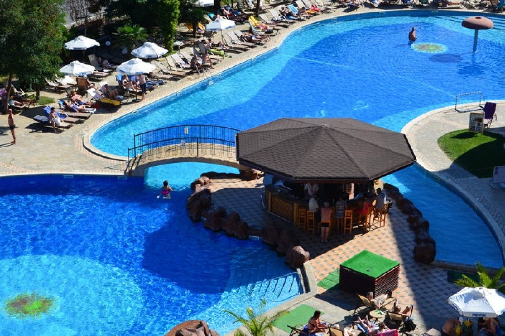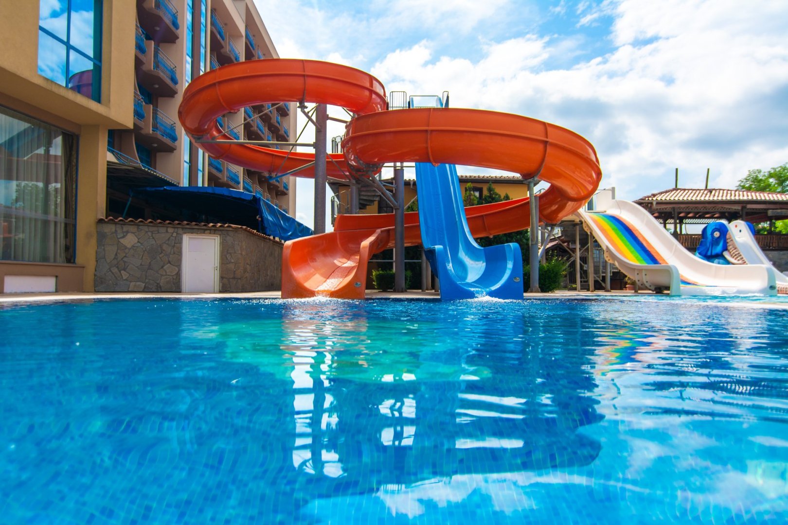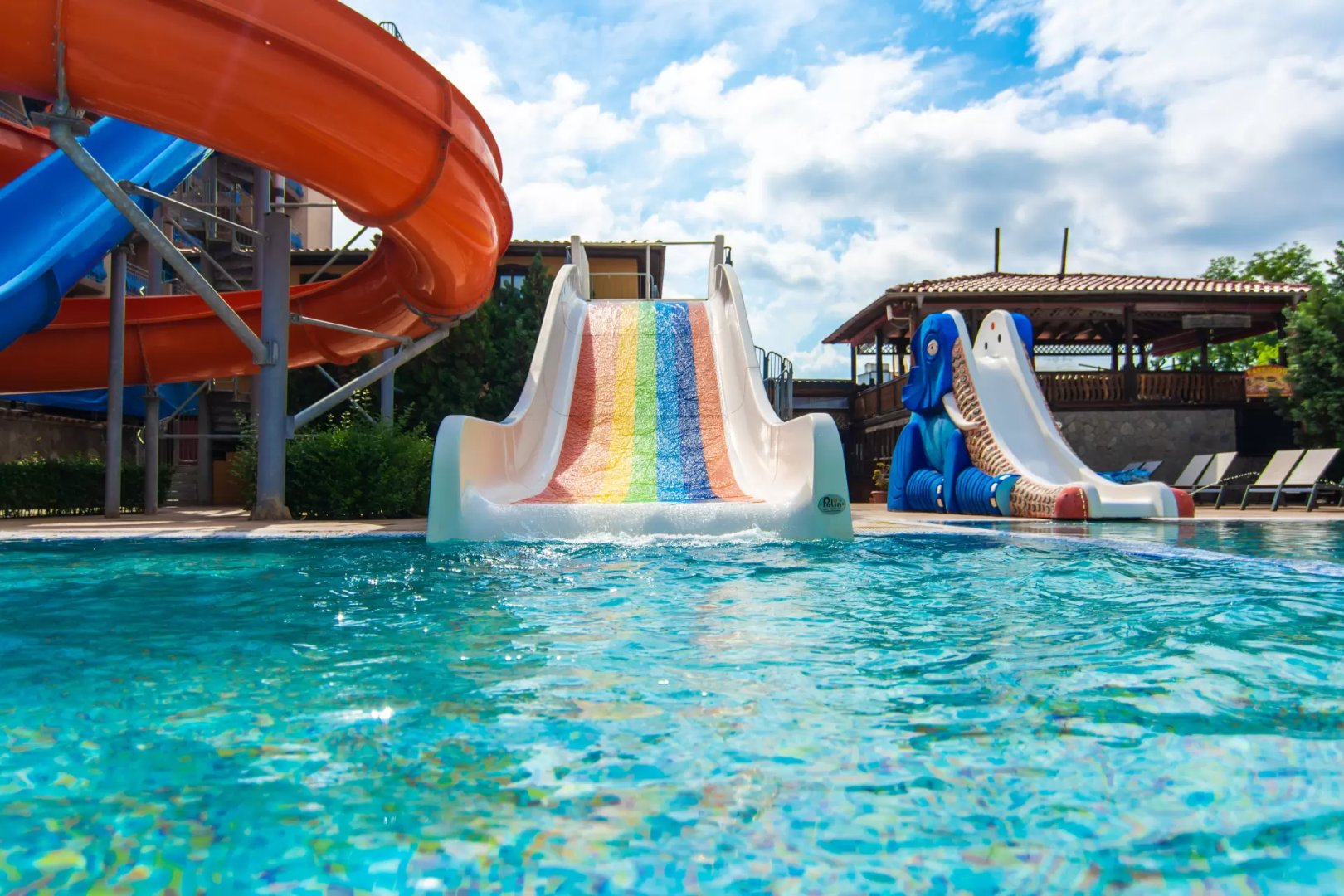 Мини аквапарк в комплекса - 2 пързалки за възрастни и 2 пързалки за деца; ∙ Два басейна (вътрешен и външен);
