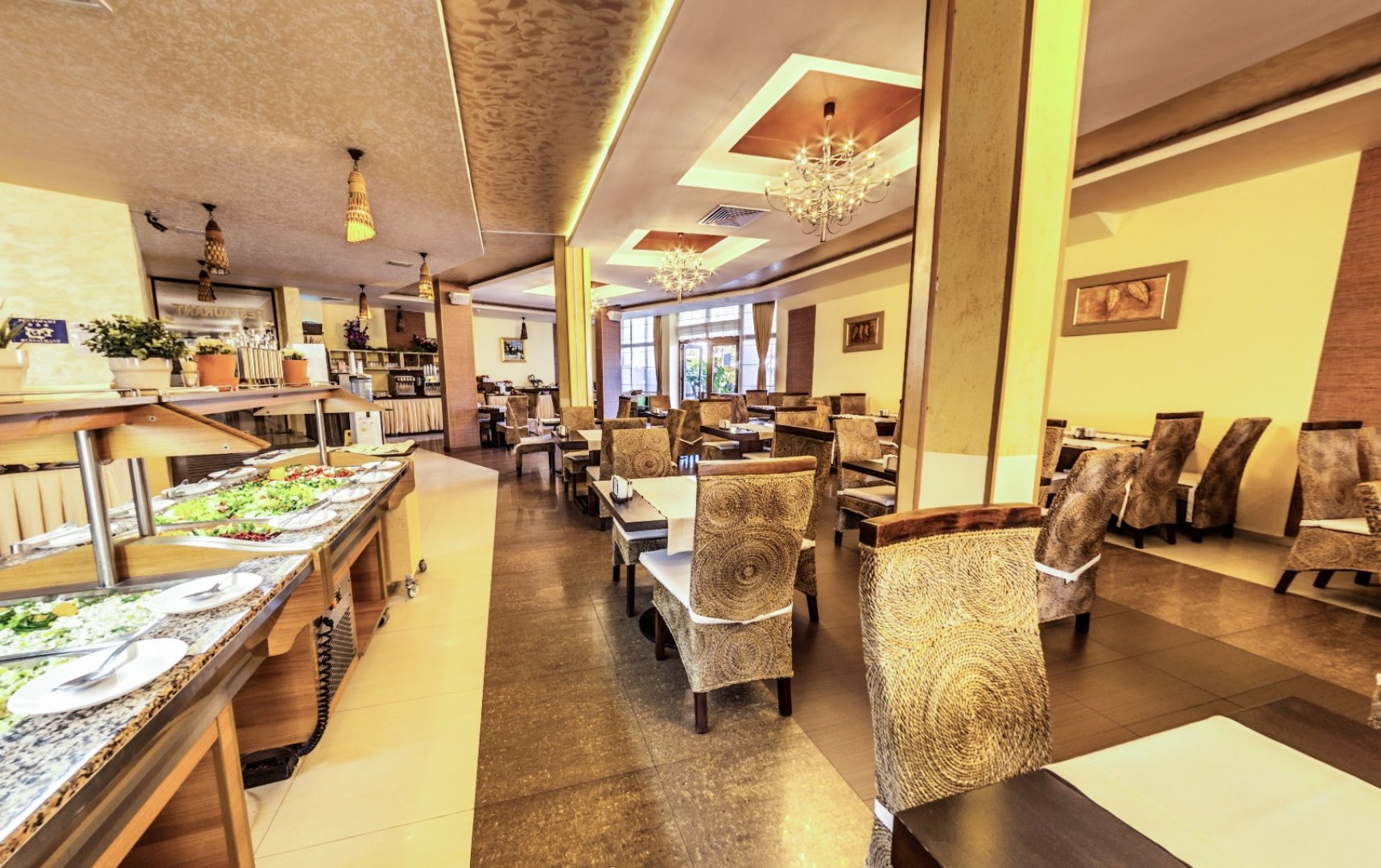 За изхранване на туристите в комплекса има впечатляващ брой заведения които предлагат повече от достатъчно избор за хранене и забавления. Има основен ресторант който има изглед към басейна и сервира превъзходни блюда и изискани вина. Също така има и пиано бар с жива музика и непретенциозна атмосферен където гостите могат да се насладят на вечерта си. На покрива на хотела има джакузи бар които е истинска атракция от където се разкрива панорамна гледка към морето и се предлагат питиета, барбекю и джакузи където гостите могат да се насладят на питиетата и да се отпуснат след дълъг ден. Пул барът е любимо място на повечето посетители, като той обслужва шезлонгите около външния басейн и сервира леки закуски, коктейли и студени напитки.