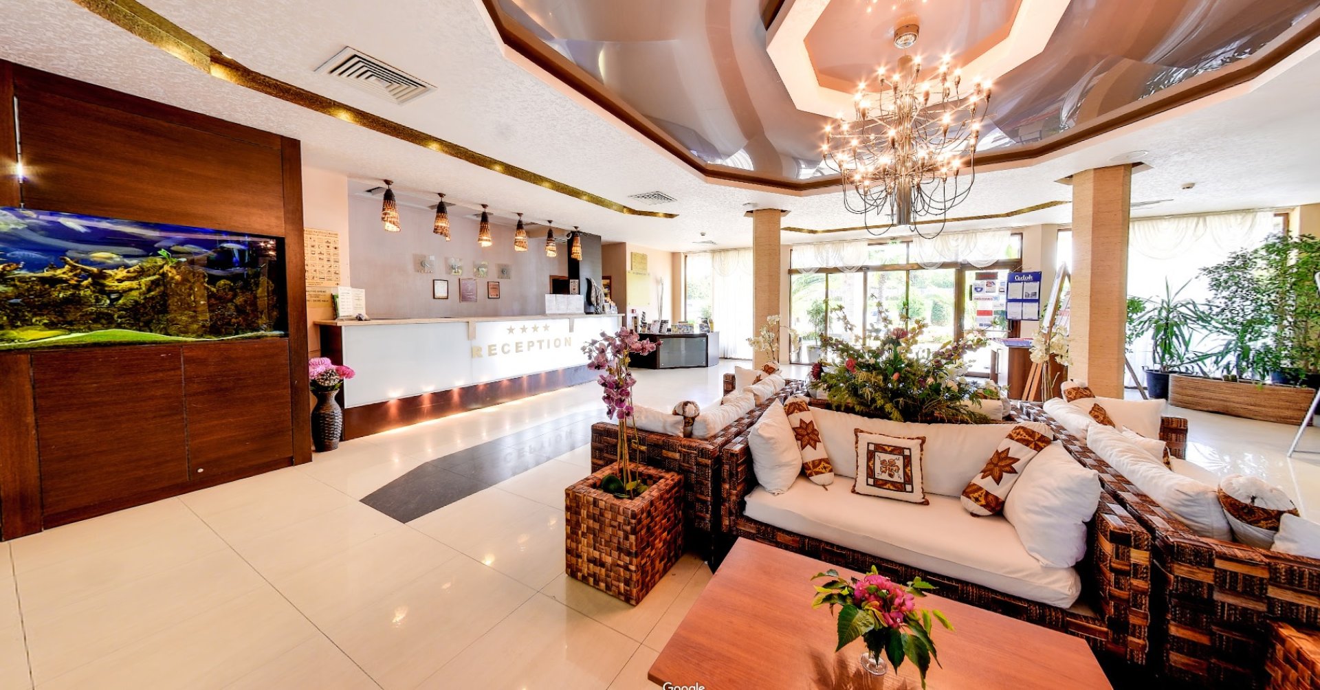 - Необезпокоявана и безгрижна почивка предлага този хотел. Прекрасно поддържани тревни площи. Тази зеленина и голяма площ ти създава усещането за невероятен простор, а това е важно за отдиха на всеки от нас. Няма скупчване на много хора, всеки си намира своето кътче за релакс. Идеално място за семеен отдих.