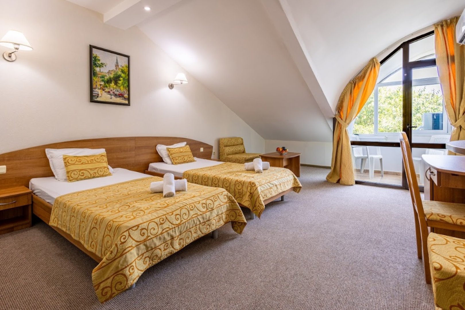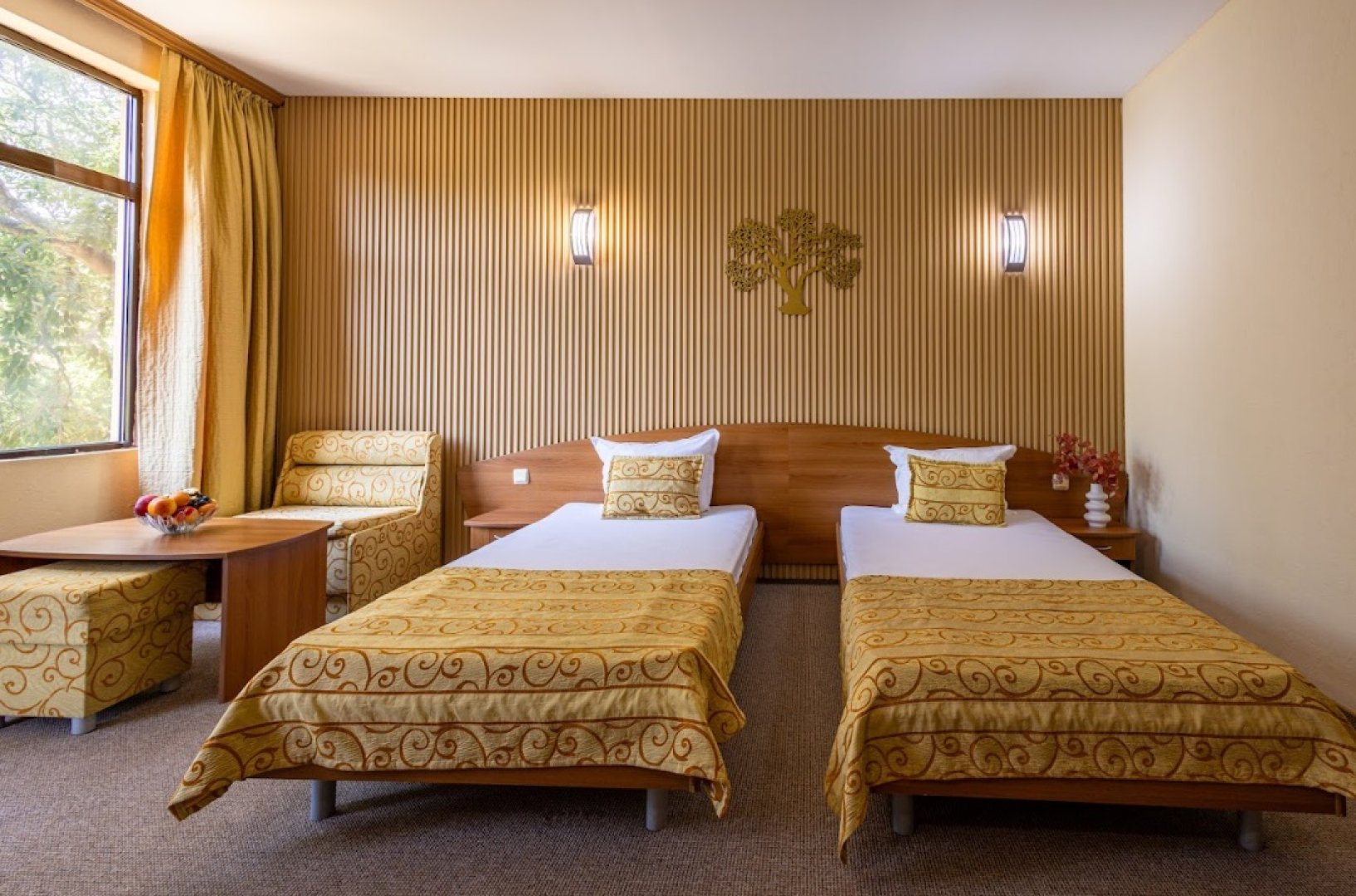 Двойна стая – стандартна двойна стая с две отделни легла, разгъваем фотьойл или единичен