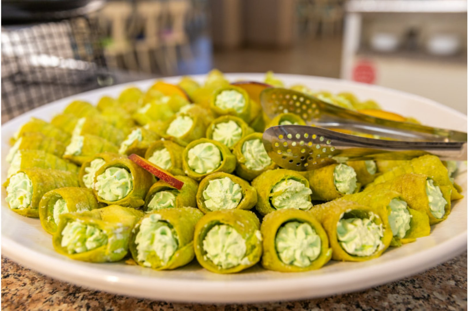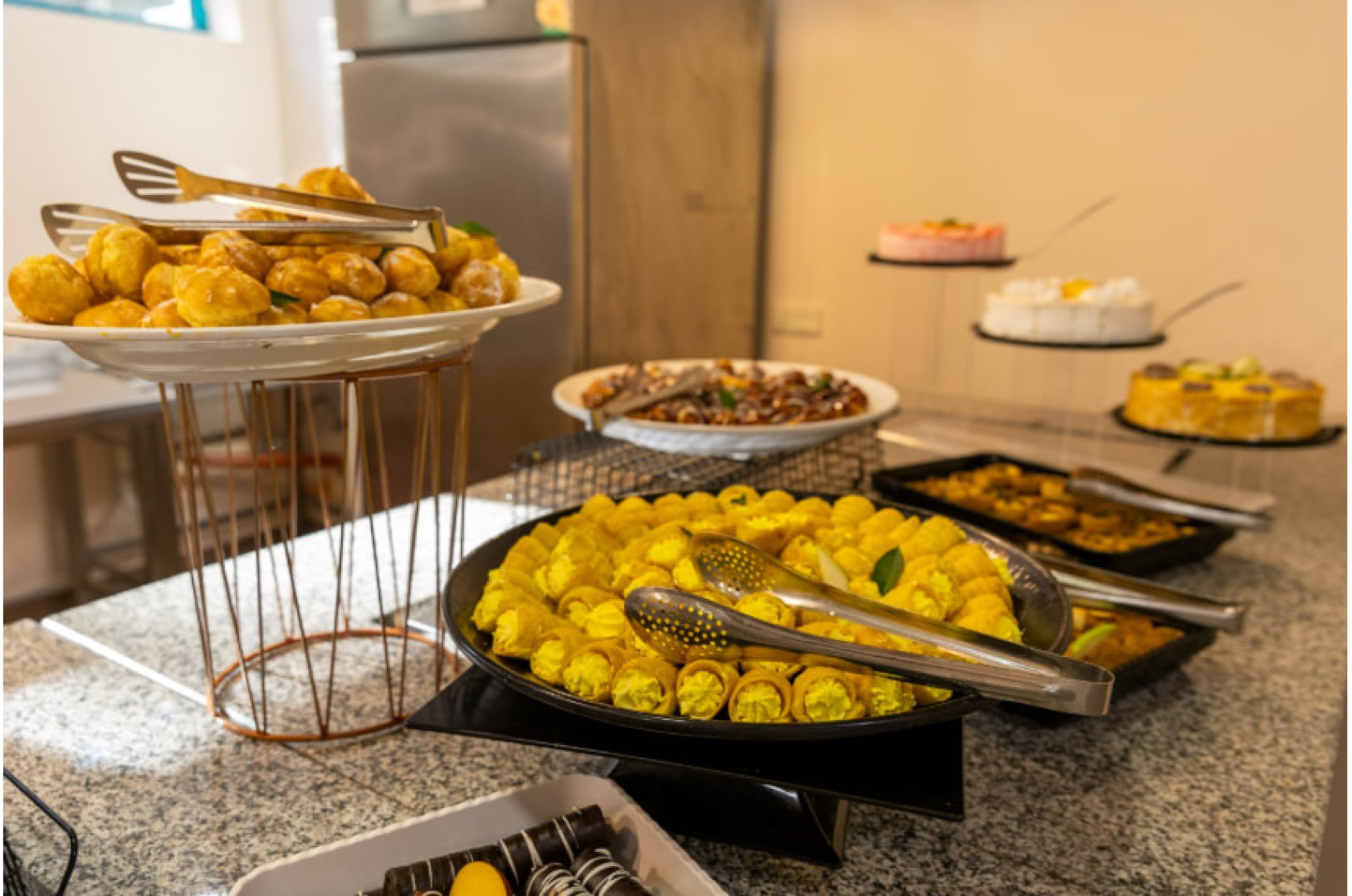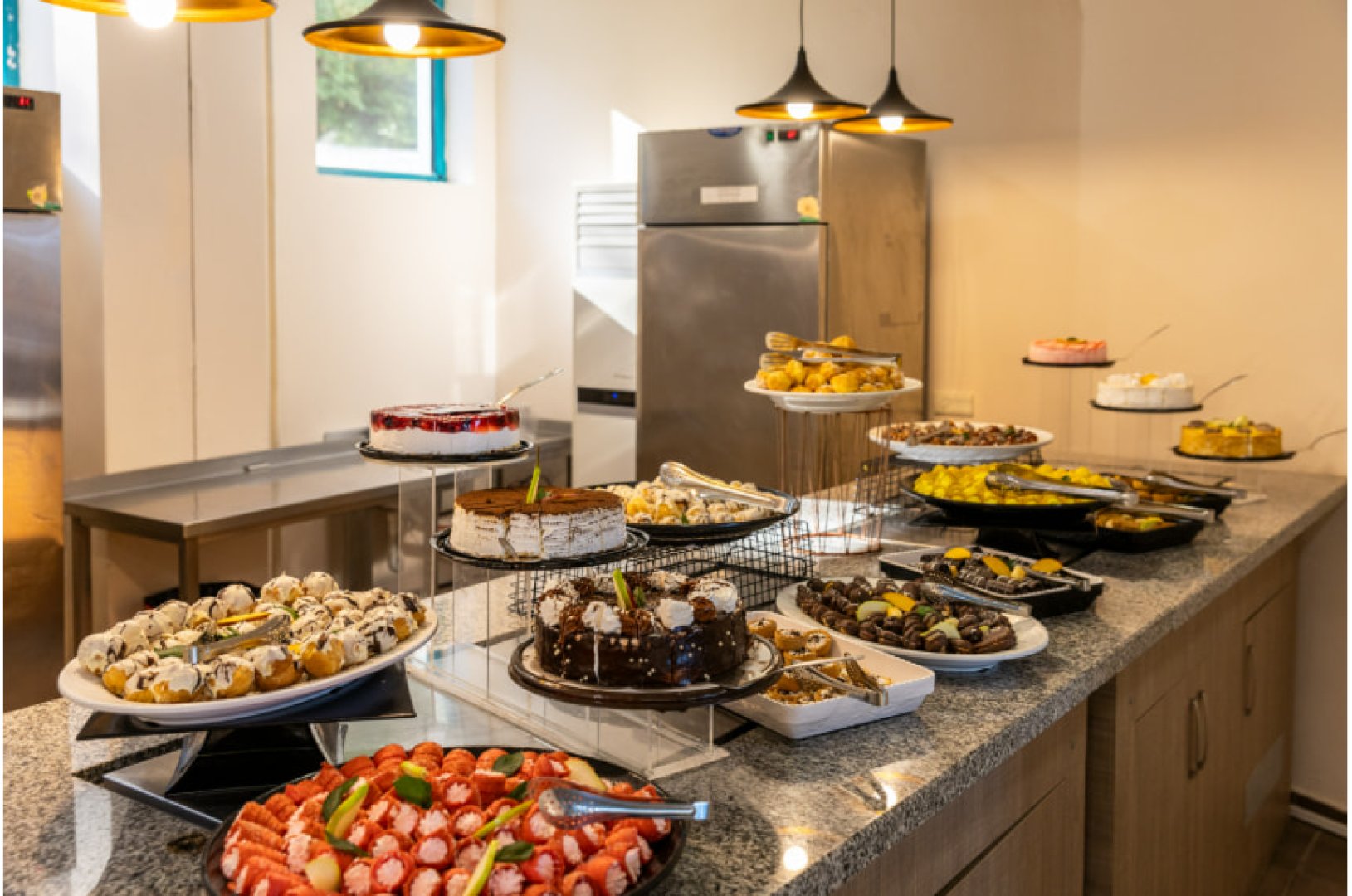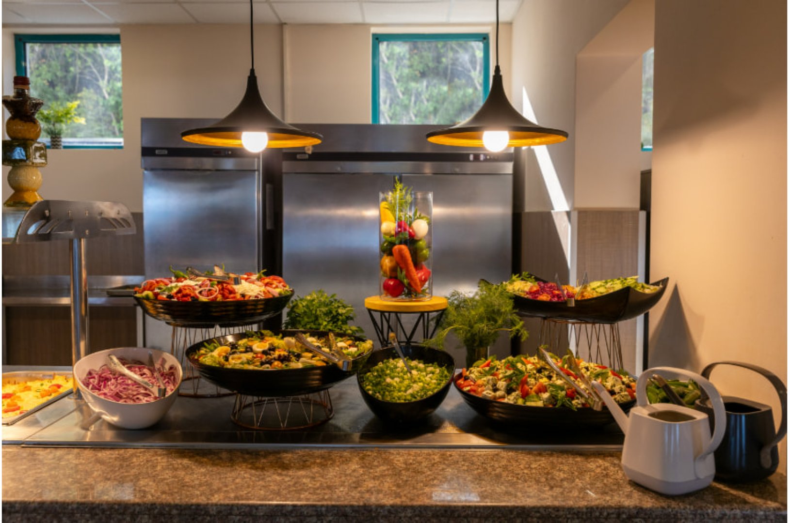 От 12:00 до 14:00 – Обяд на бюфет в ресторанта: разнообразно меню и интернационални ястия: салати, супи, основни ястия, паста, десери, плодове, live-show cooking. Обядът е на две смени по един час. Бройката на смените се определя на място спрямо наличните свободни места за деня.