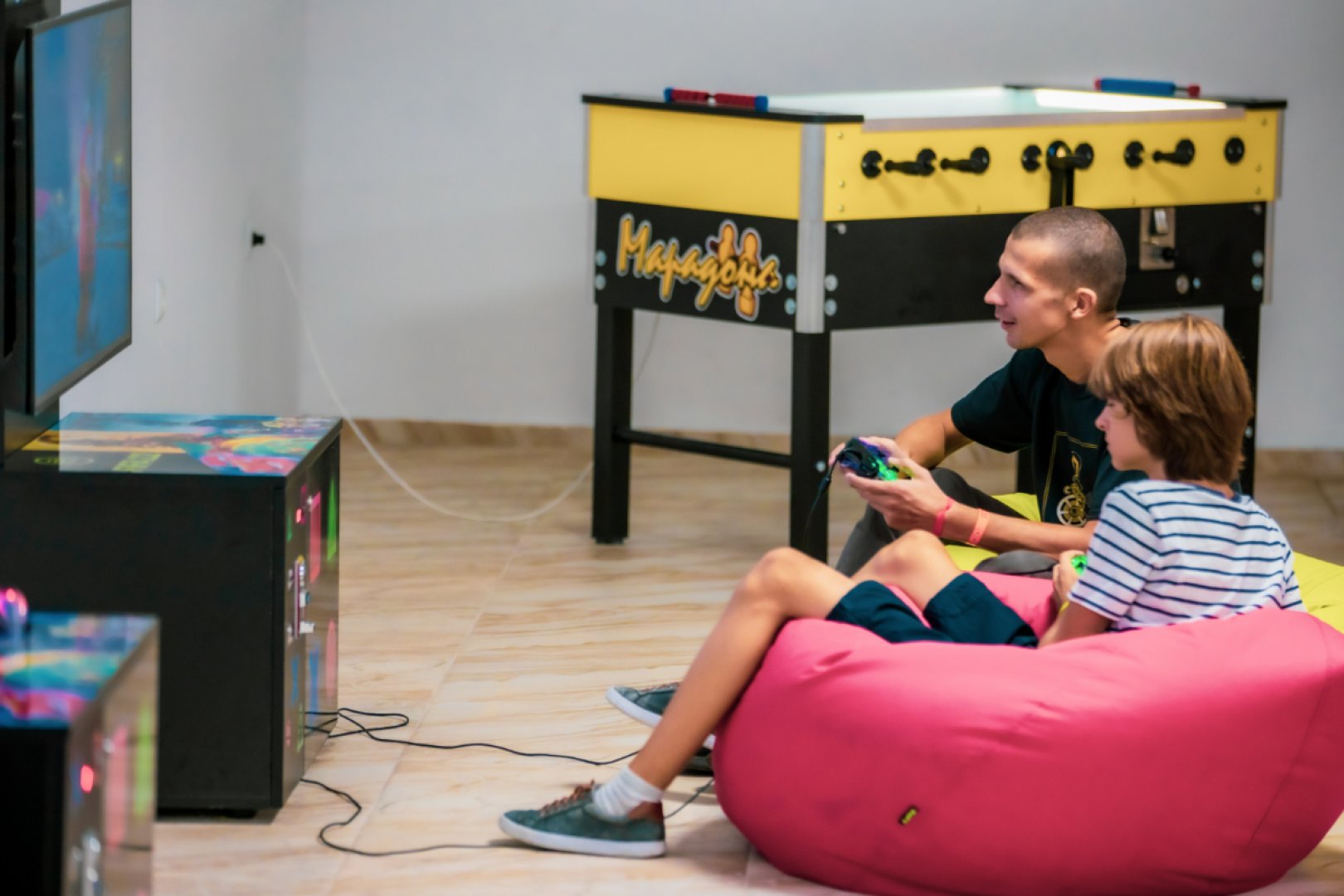 Първо дете 2-12.99 г. на допълнително легло с трима възрастни в двойна стая, фамилна стая и апартамент - безплатно.